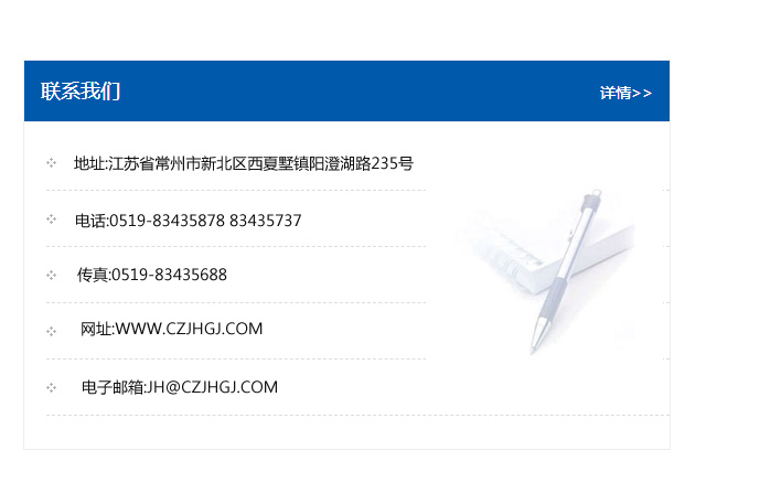 地址:常州市新北區友邦商務大廈1幢16、17層  電話:0519-85101652  傳真:0519-85112595  郵編:213022  網址:www.cz-jiayue_cn.hntgglzb.com  郵箱:xiajifengaa@163.com